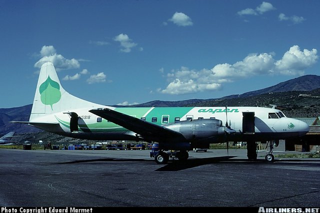 Aspen Airways Convair 580, N5818, is shown at Aspen, Colorado on August 23, 1983.