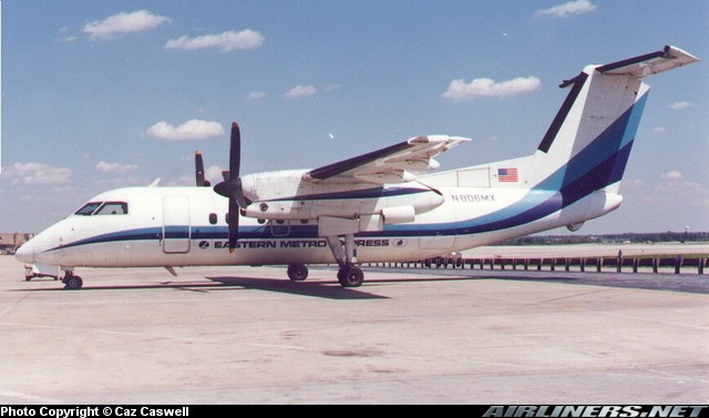 Eastern Metro Express DeHavilland Canada DHC-8-102, N806MX, is shown at Atlanta on May 16, 1990.