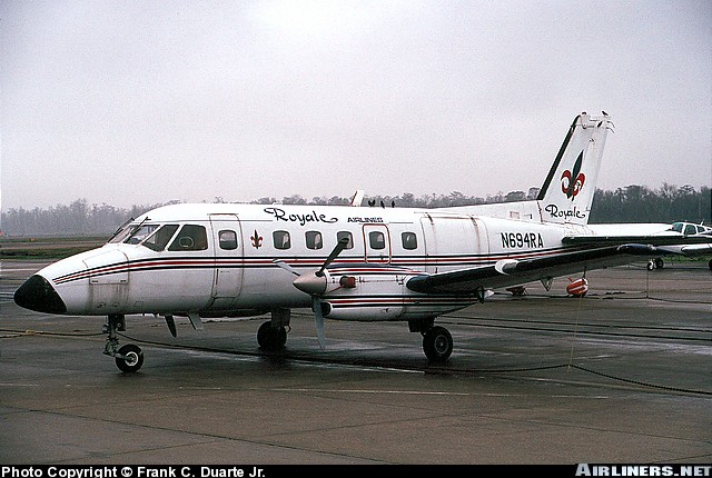 Royale Airlines Grumman G-159C Gulfstream I, N724RA, is shown at New Orleans on November 22, 1984.