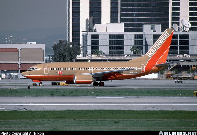 Southwest Airlines Boeing 737-7H4, N740SW, is shown at Los Angeles International Airport on February 13, 1999.